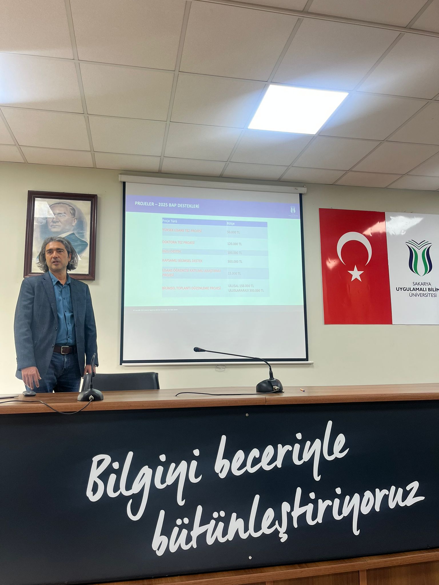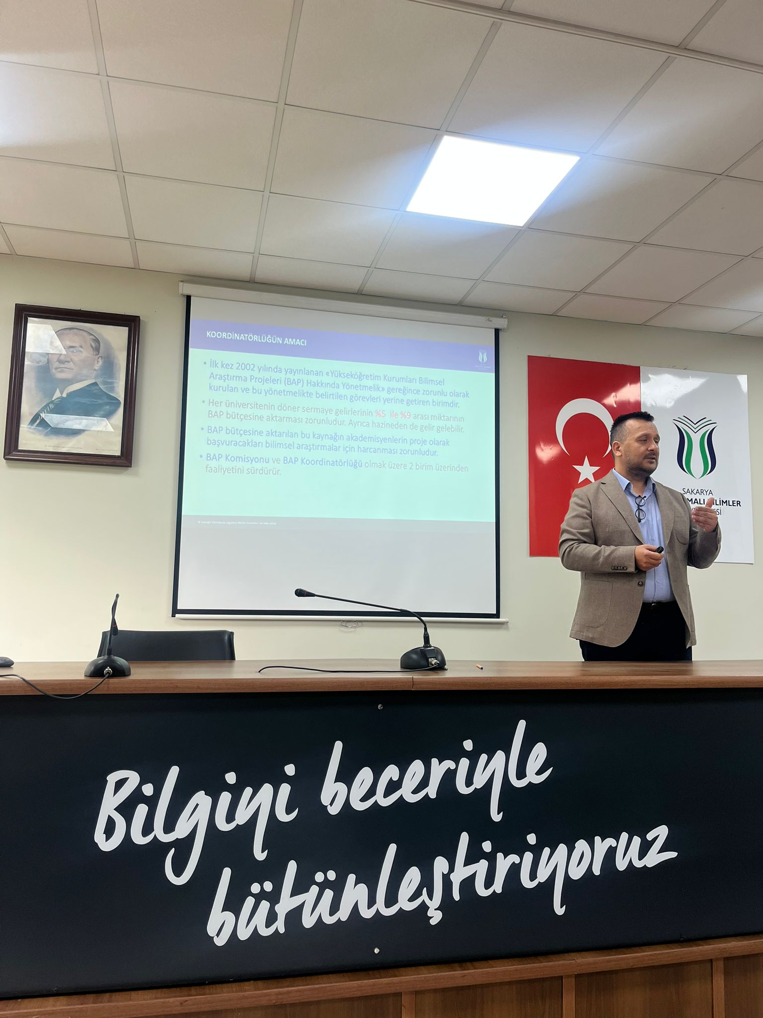Sağlık Bilimleri Fakültesi'nde 15 Ekim 2025 tarihinde BAP Koordinatörü Prof. Dr. Mustafa CAN ile birlikte Öğr. Gör. Coşkun Cengiz ve Merve Balkaya tarafından bilimsel araştırma projelerimiz hakkında bilgilendirme amacıyla bir sunum gerçekleştirildi. Dış kaynaklı projelerle ilgili BAP Koordinatörülüğü Dış Kaynaklı Projeler biriminden Doç. Dr. Nermin Ceren TÜRKMEN ve Dr. Öğr. Üyesi Hüseyin Serdar GEÇER tarafından bilgi verildi.